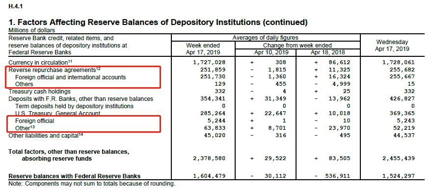 美联储其他的非准备金电子负债主要有,RRP、海外回购池、以及政府资助型企业 (GSE) 和指定金融市场公共设施 (DFMU) 账户。根据美联储最新的H.4.1表,这些负债的总额达到了约3100亿美元。