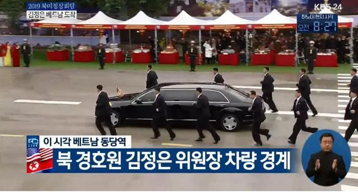 在新加坡和越南的朝美首脑会晤期间,金正恩乘坐的都是奔驰S600 Pullman Guard防弹车。专车车头插有朝鲜国旗,车身两侧分别有六名警卫人员进行贴身护卫。