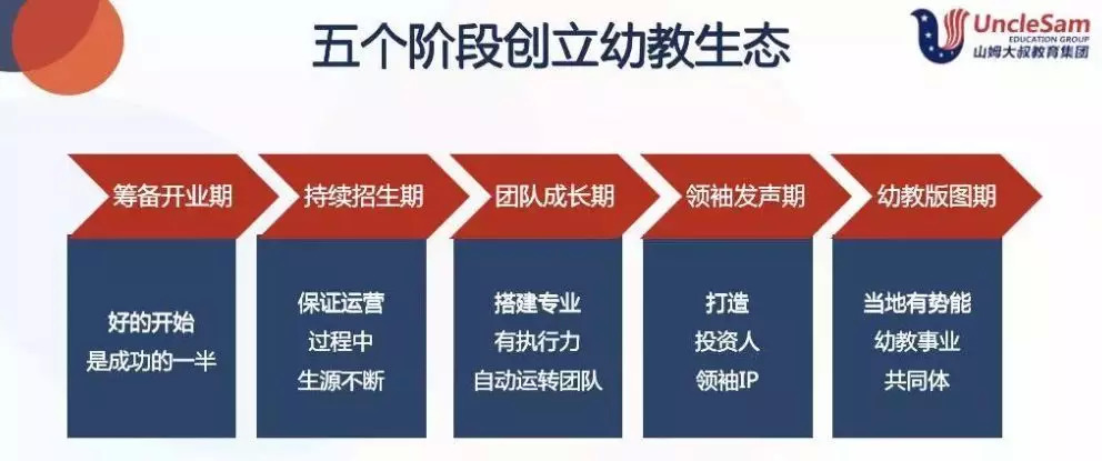 据小鹿林子介绍,山姆大叔教育集团在5年前就开始幼教生态系统布局,集团为投资人提供全方位立体化的项目输出与支持服务。
