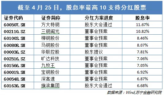 今年,股息率最高的股票大都分布在钢铁行业,笔者认为主要有两个原因:一方面,钢铁行业去年相对景气,各企业取得了不错的利润;另一方面,预期未来一段时间,钢铁需求趋向于饱和,企业无意扩大生产,将去年大部分的利润以现金股利的形式分配给股东。