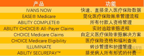 同时,ABILITY Network还开发出多款在线技术产品。与预期效果相同,产品种类的繁复并没有让使用者无从下手,反而因功能细分而得到客户的认可。此外,ABILITY Network为用户提供整套的解决方案,其平台支持从制药公司、设备制造商和诊断公司一直到患者护理点的实时医疗服务,主要集中在便捷支付、优化索赔处理和报销、提高护理管理质量方面。