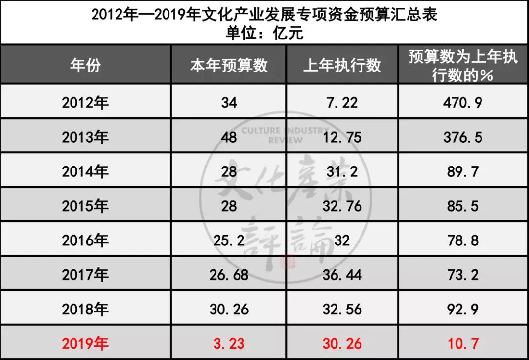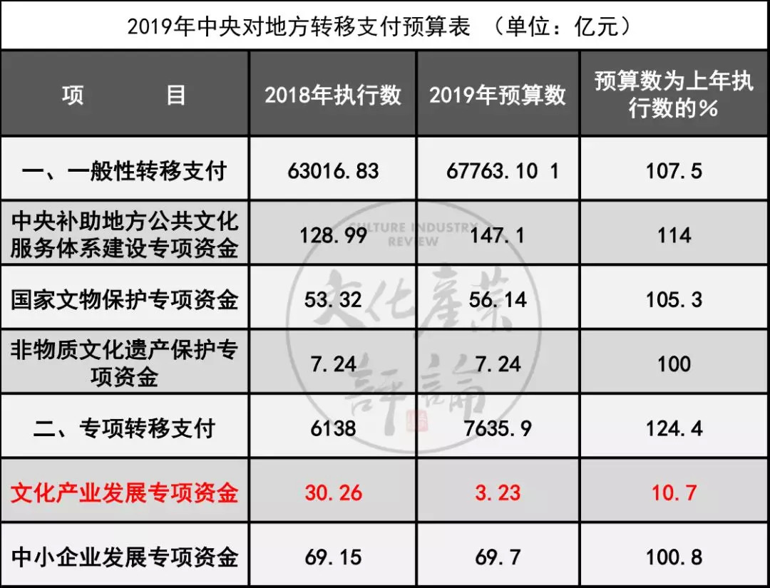 其实,对于今年文化产业发展专项资金缩减,财政部在《预算说明》中已经给出了明确的答案:从2019年起,中央财政通过政府投资基金对文化产业予以支持,有关转移支付资金转列中央本级。
