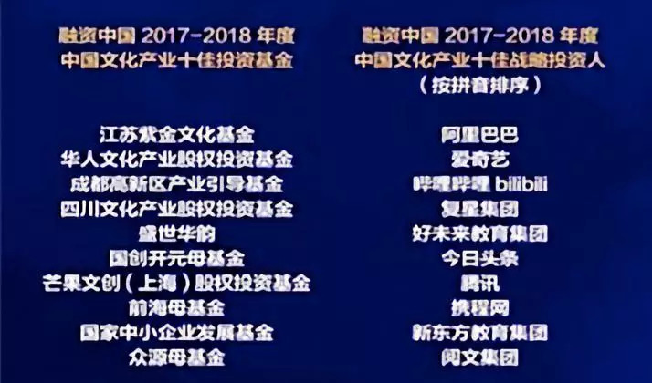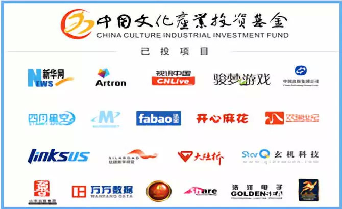 中国文化产业投资基金,是当前运营最久、最具代表性政府主导型文化产业基金,也是唯一一支“国家队”。它是2011年7月,由财政部、中国国际电视公司、中银国际控股有限公司和深圳国际文化产业博览交易会有限公司联合设立,基金规模 200 亿,首次募集41亿元,财政部出资5亿元。