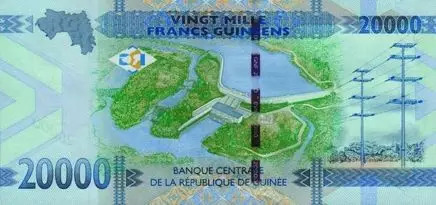 在西非国家几内亚,2万几内亚法郎的背面印的是凯乐塔水利枢纽工程,是几内亚有史以来规模最大的综合性水利枢纽项目。