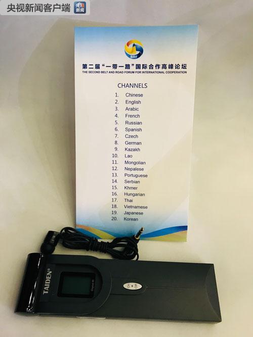 △这是开幕式配备的同传耳机,为现场嘉宾提供20种语言的同传服务。(央视记者钟锋拍摄)