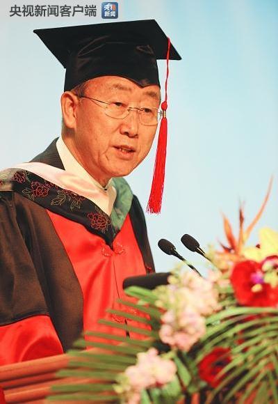 △这是2010年南京大学授予联合国前任秘书长潘基文名誉博士学位。(资料图片)