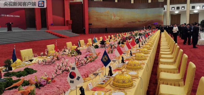 △这是欢迎宴会的主桌,有73个座位。(央视记者李铮拍摄)