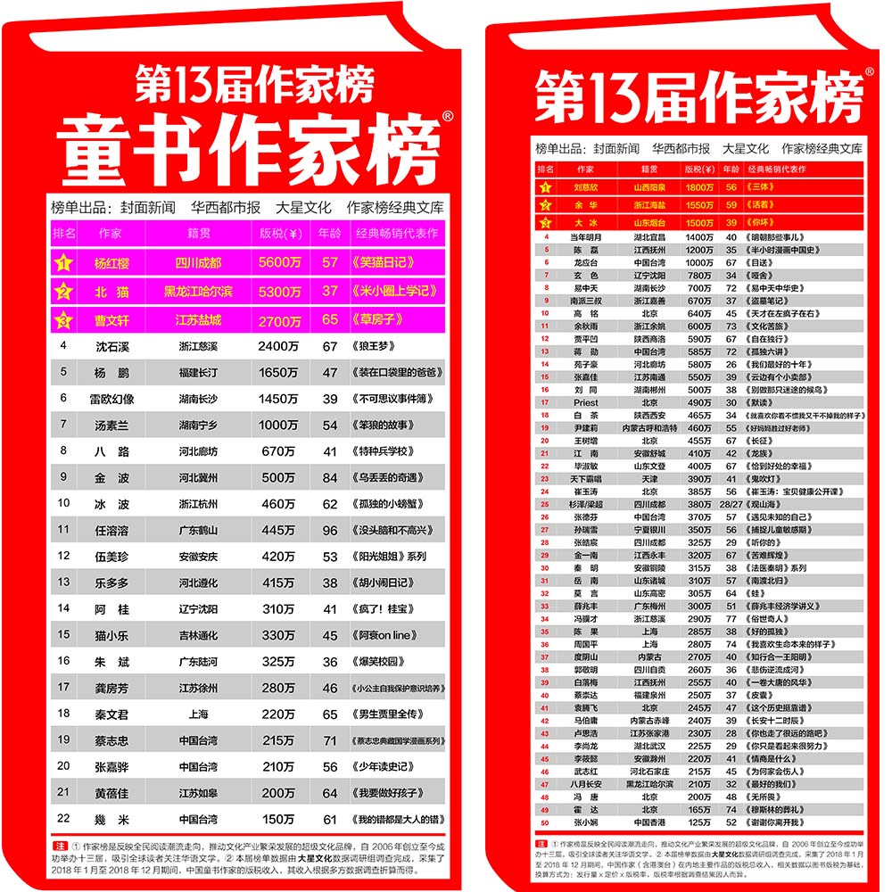 在腾讯《大家》一篇题为《一个家长眼中的国产童书:故事没劲、三观成谜、文字粗糙、绘图拙劣》的文章中,作者徐元从自身经历出发,认为国产童书在学校中不受老师欢迎,也很少被列入阅读推荐书目中;国产童书不受欢迎是有道理的,因为它们通常缺乏想象力、没有趣味、充满说教且美感不足。但在一份2018年作家版税排行榜单中,童书作家榜上前两位的成绩可谓非常惊人——童书作家榜上排名第一的杨红樱2018年的版税额(5600万)远远高于作家榜排名第一的刘慈欣(1800万),童书榜排名第二的北猫(5300万)也超过了作家榜第二名余华(1550万)和第三名大冰(1500万)的版税总和。