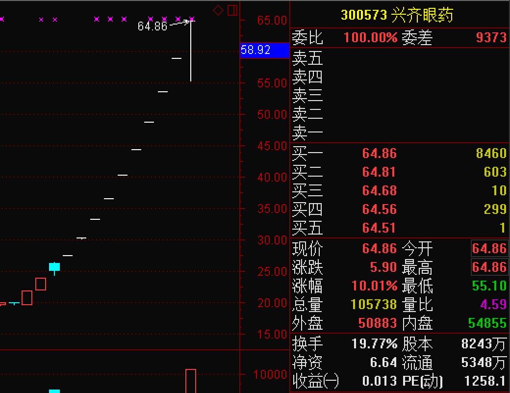 兴齐眼药这一波发狠(13天12个涨停板,累计涨幅227.74%),表面原因与其药品注册进度有关。据公司4月11日公告,其从国家药品监督管理局网站获悉,提交的盐酸奥洛他定滴眼液(受理号:CYHS1500660 辽)注册申请在国家食药监局网站的办理状态变更为“审批完毕-待制证”。“审批完毕-待制证”状态表示国家药监局行政受理服务中心正在制作批件,这对兴齐眼药来说自然利好,不过公司尚未取得正式药品批件。在此前的4月8日公告中,兴齐眼药还提及自己提交的溶菌酶滴眼液(受理号:CXHS1300023 辽)注册申请在国家食药监局网站的办理状态也变更为“审批完毕-待制证”。在不久后的4月17日,兴齐眼药就宣布收到了签发的盐酸奥洛他定滴眼液《药品注册批件》,以及签发的溶菌酶滴眼液《药品注册批件》、《新药证书》。