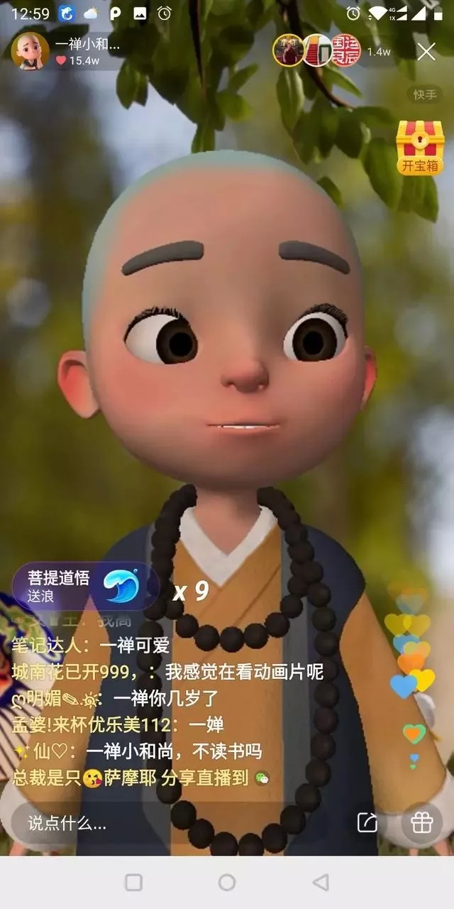 4月23日,25万快手用户观看了一场“前所未见”的直播。49分钟的直播时间里,一个牙齿微凸,大眼圆脸的3D动画版小和尚摇头晃脑,收获了接近65万的点赞。这是快手首次在二次元直播上做出尝试,也是国内短视频平台首次推出“虚拟形象直播”(以下简称虚拟直播)服务。