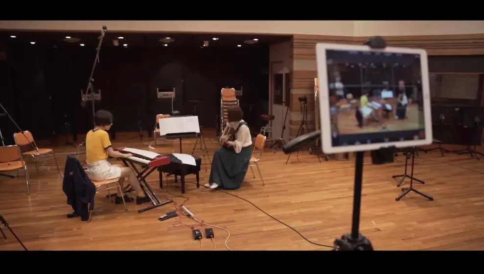 由于用动画展现演奏场面很难,所以歌手的演唱过程也会被安装在录音棚各个角落的摄像机、相机、手机记录下来,无论是表演,举动,口型,都会拍成概念短片,成为动画制作的参考。
