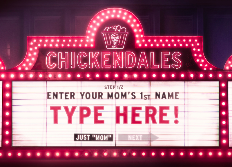 肯德基还在官网推出官方定制视频服务:你可以登录网站,输入自己妈妈的名字和她所在的地区名,便能收获一条定制了妈妈姓名和地区的祝福:肌肉男的翘臀与屏幕连在一起可以拼出一句话“做某州最酷的妈妈是什么感受?”
