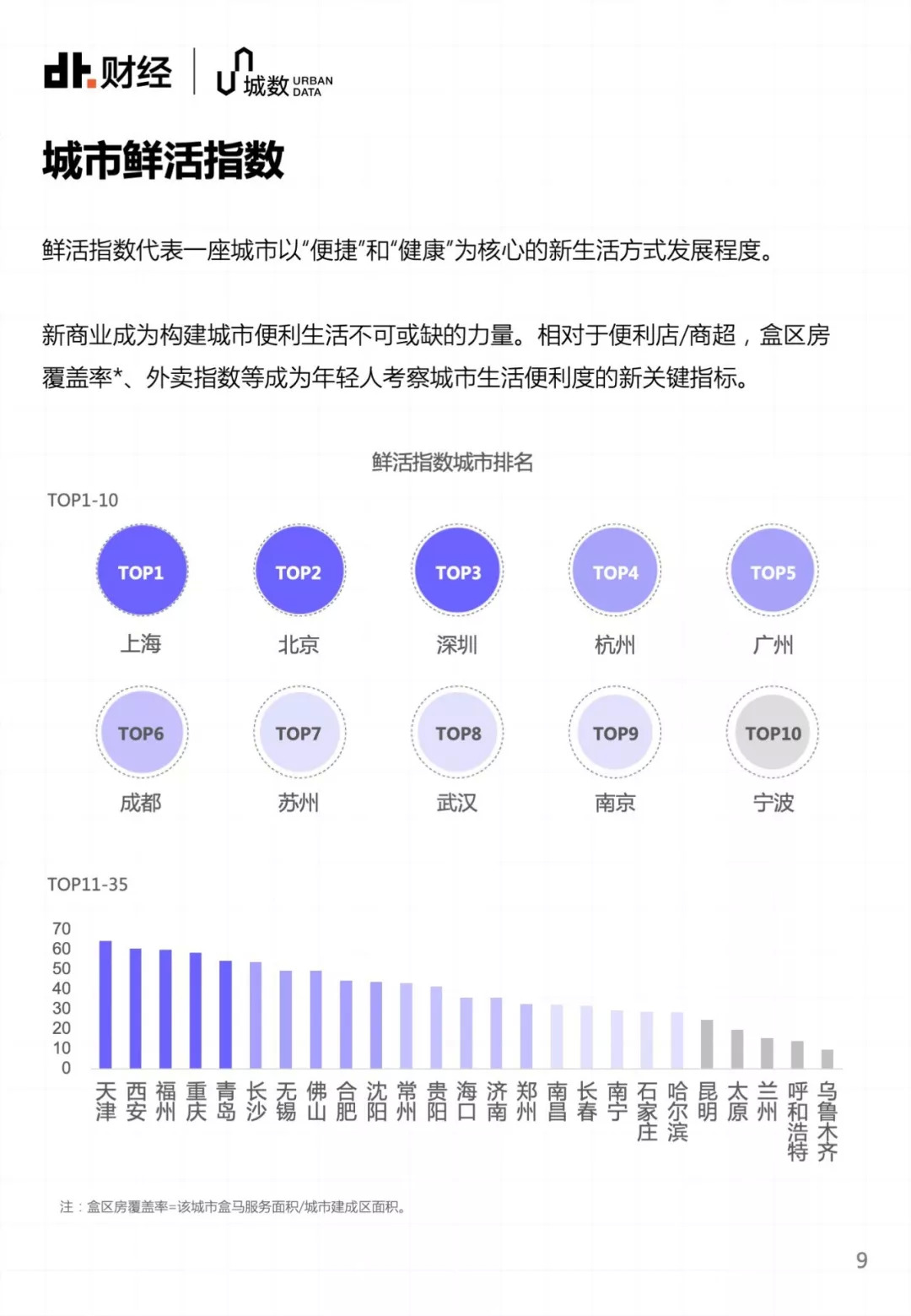 报告用城市鲜活指数来评估一座城市新生活方式的发展程度。除了大家熟悉的便利店/商超,盒区房覆盖率、外卖指数等也成为年轻人考察城市生活便利度的新关键指标,它们共同形成了鲜活指数下的生活便利指数,指数更高说明当地政策与环境对新事物的接收度更高。