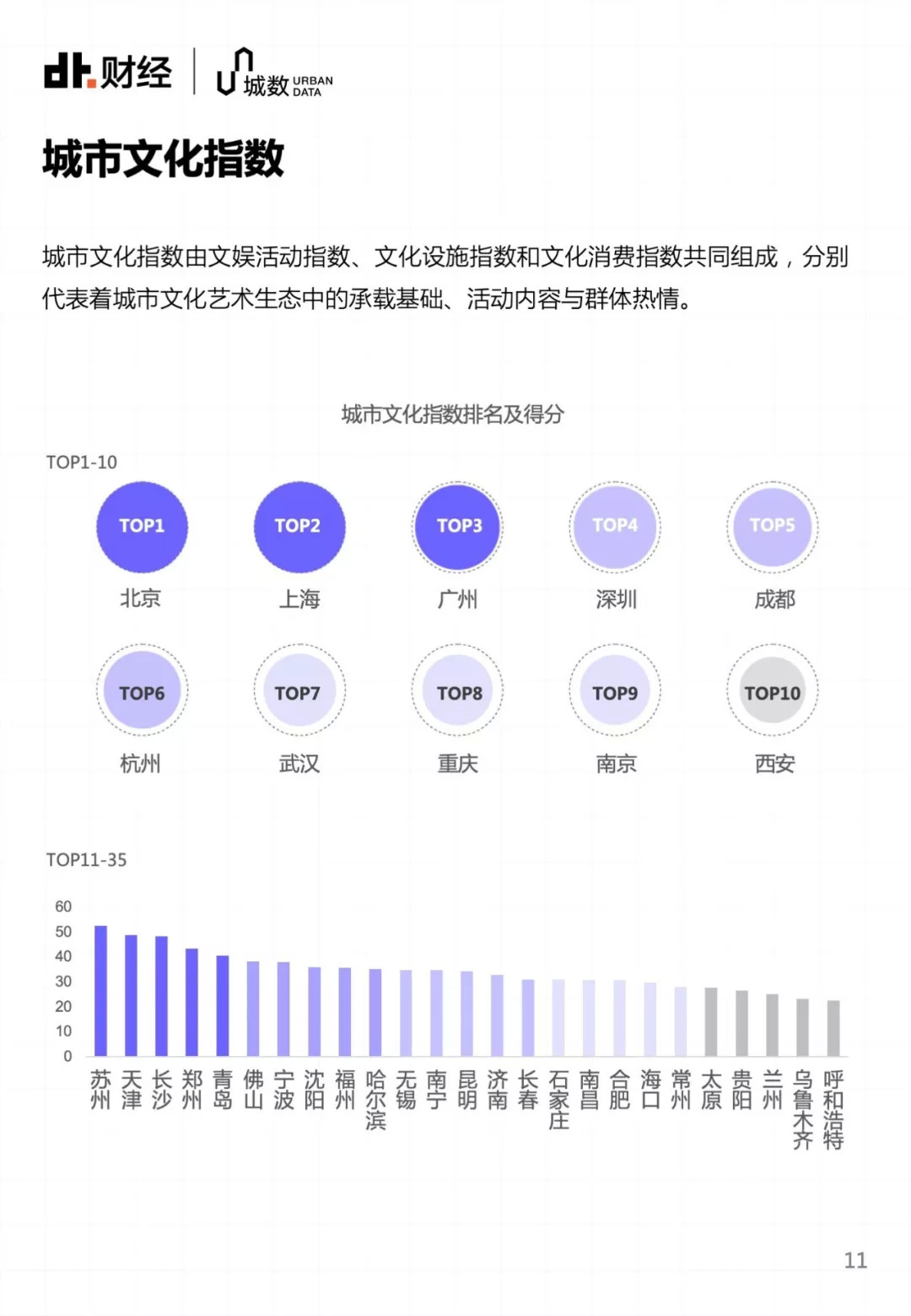 报告中的城市文化指数由文化设施指数、文娱活动指数和文化消费指数共同构成,分别代表着城市文化艺术生态中的承载基础、活动内容与群体热情。