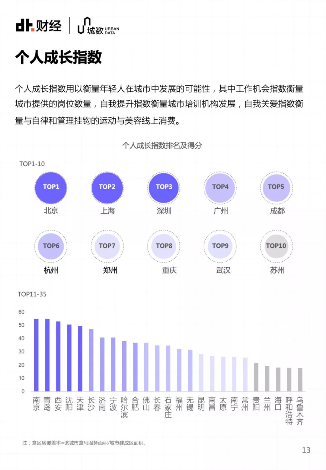 报告中的个人成长指数用以衡量年轻人在城市中发展的可能性,这是个更硬核的指标。工作机会指数主要考量一座城市能提供的职位数量;还考虑到城市人所营造的成长氛围,用自我提升指数比较了各城市的培训机构,一定程度上代表城市持续学习的需求量;而自我关爱指数衡量了与自律和管理挂钩的运动与美容线上消费。