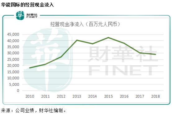 所以回到前边的问题,华能国际的利润率是否到达最低点?很有可能,煤价的下行压力和清洁能源的发展将可提振其业绩;与此同时,该公司一直保持稳定的经营现金流,2018年的经营净现金流入达到288.92亿元,相当于每股2.14港元,或港股现价5.04港元的42.5%。