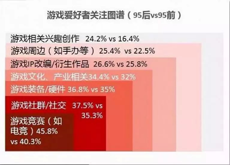 企鹅智库联合QQ空间发布的95后群体报告也指出了这一点,45.8%的95后会因为喜欢游戏而关注游戏的相关赛事,是占比最高的游戏衍生。