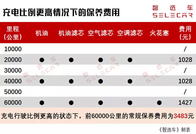 对于购买了既可加油、也可充电的双模车型消费者来说,很多人都会认为假如双模车型更多使用纯电行驶,汽油机介入少,那么保养周期理应更长。但是目前主流的一些双模车型不管车主是否长期用电行驶,一律设置了统一的保养周期,小智认为不是很合理。理想ONE则考虑到了这一点,如果充电比例更高的情况下,理想ONE的保养间隔可以扩大至2万公里,前6万公里仅需3483元进行保养。