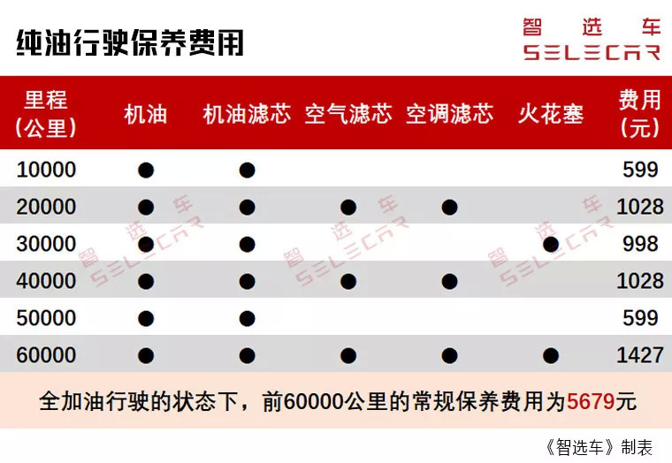 在纯油行驶的状态下,由于发动机工作时间更长,所以保养间隔被设定在了1万公里。小保养含工时费仅需599元,以理想ONE的定价来看算得上亲民。最终前6万公里仅需5679元的常规保养费用,当然诸如刹车油、冷却液这些并未计算在内。