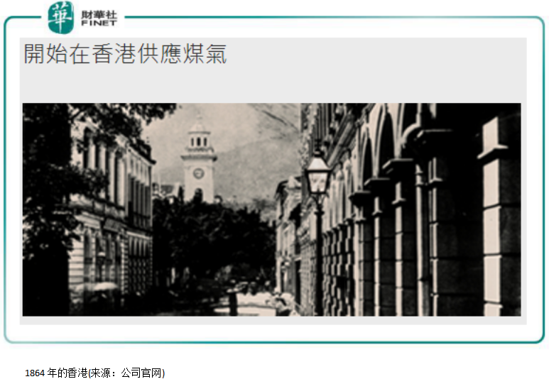 1862年,也就是在中国内地兴起洋务运动的次年,中华煤气在英国成立,成立两年后开始向香港市场供应煤气。此后,中华煤气不断扩大在香港的煤气市场,成为香港规模最大的能源供应商之一。