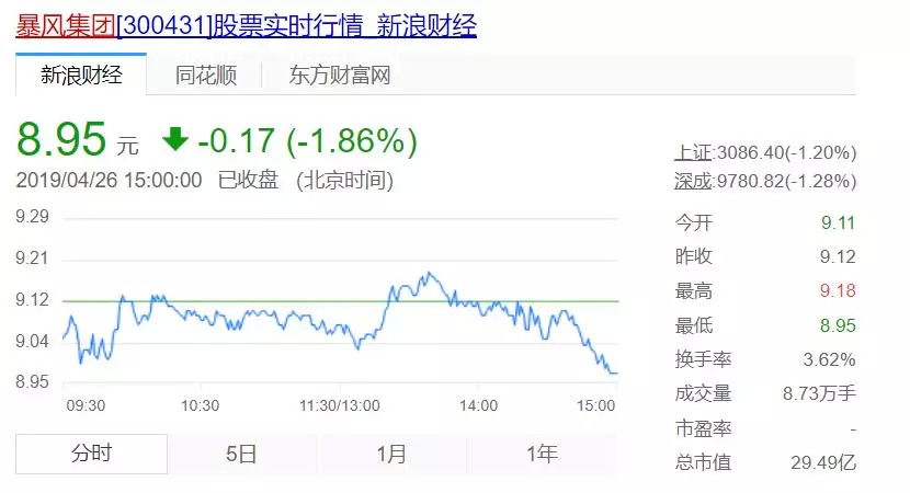 暴风集团截止至4月26日股价
