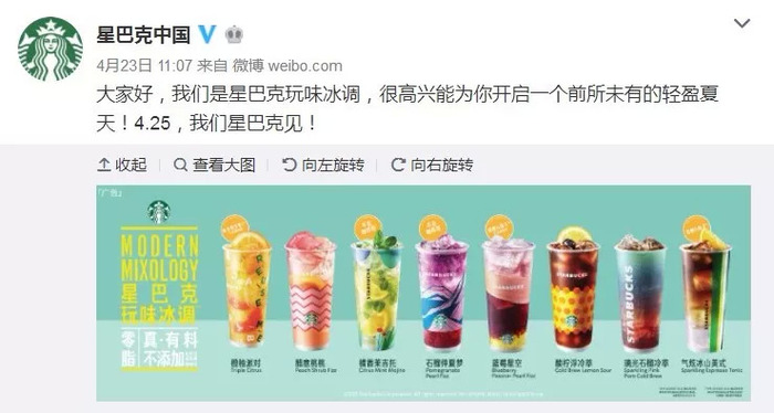 网友对新品的热烈讨论,除了原本的品牌积累外,与星巴克的品牌风格大变有关。在这次新品推广中,星巴克的品牌形象,正从商务精英代表转变为休闲轻松的夏日少女。当初咖啡文化在国内方兴未艾,星巴克迅速占领市场,以相对高昂的价格及独特出品,打造强势高端的形象,成为消费者心中“咖啡文化”培养者。
