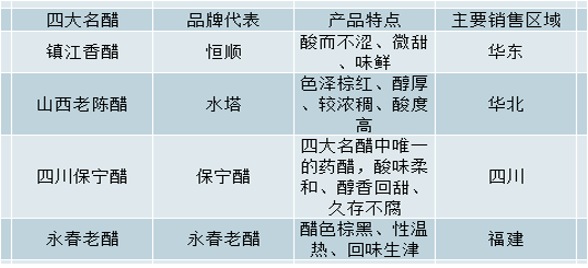 由于食醋制造方法较为简单,行业壁垒较低,高度分散,加之各地消费者饮食习惯、风味需求不同,食醋行业的地域性很强,逐渐形成了中国四大名醋——镇江香醋、山西老陈醋、阆中保宁醋和福建永春醋。