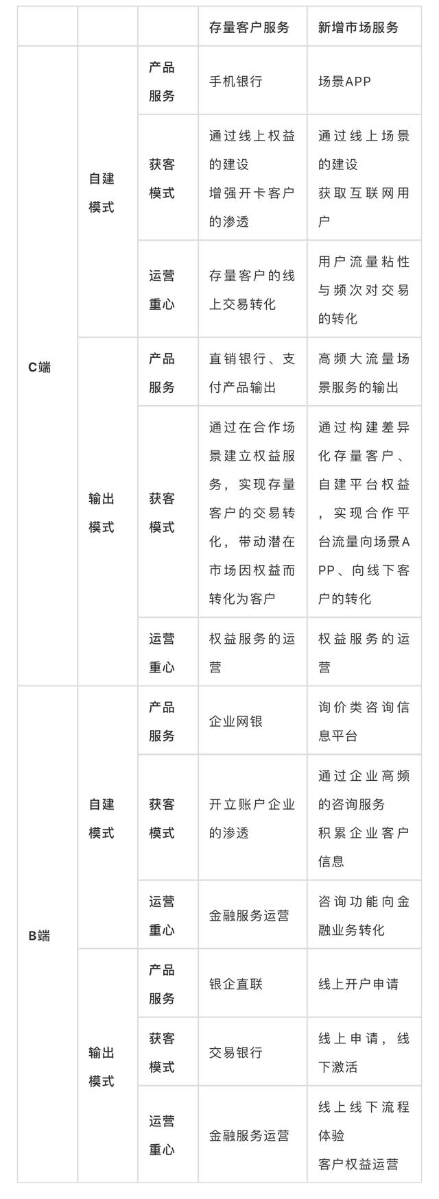 我们一直认为电子银行的核心价值是客户服务,虽然其价值不可取代,但是并不能解决市场拓展的问题,它需要高度依赖传统获客模式。这种依赖也不完全由电子银行自己决定,因为如果电子银行将定位过分过急转向市场拓展方向,由于新兴市场客群需求不同,对于存量客户行为习惯的影响也可能会造成不可逆的冲击。
