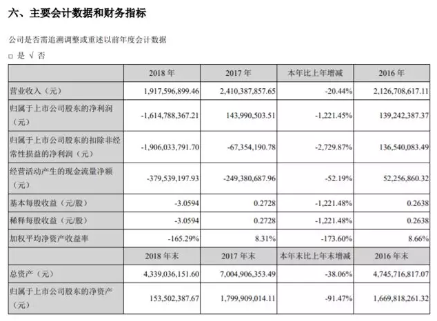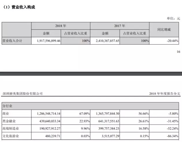4月29日晚间,赫美集团(SZ:002356)发布2018年年报及退市风险警示公告等。财务数据显示,报告期内赫美集团营业收入19.18亿元,同比下降20.44%;净利润亏损16.15亿元,同比下降1221.45%;扣非净利润亏损19.06亿元,同比下降2729.87%。