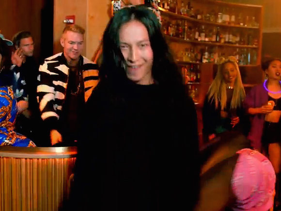首先你会发现巴黎世家(Balenciaga)的创意总监Alexander Wang(王大仁),以及Moschino的创意总监Jeremy Scott。Alexander Wang穿着标志性的黑色上衣,甩动着他的长发,一边跟着歌词唱一遍扭动着身体。很显然他不是特别擅长跳舞,舞姿生硬略显尴尬,从MV截图上看,他的表情还挺魔性。