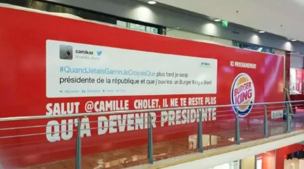 粉丝:哪天我做了法国总统我就把汉堡王开到布赖斯特。汉堡王:你好,我们来了,现在就等你成为总统了。