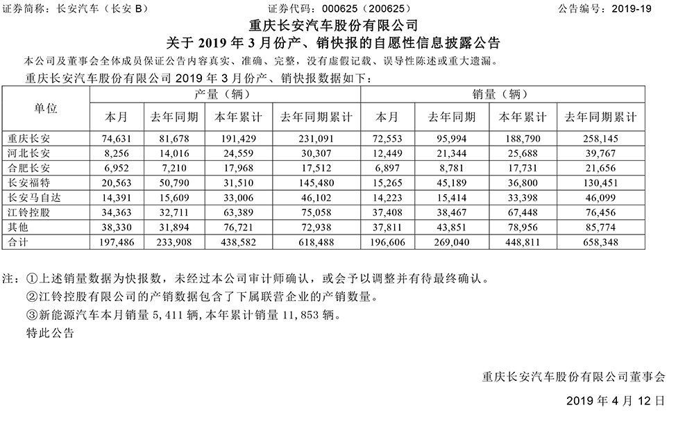 根据稍早前长安汽车公布的一季度销量数据来看,旗下所有分公司销量均出现下滑,不仅整体销量仅为448,811辆,同比下滑31.82%,整体产量同时下滑29,085辆。其中长安乘用车板块主体重庆长安一季度销量为188,790辆,同比下滑26.87%;其余分公司河北长安和合肥长安也出现销量下滑;而长安福特形势更为严峻一季度销量仅为36,800辆,同比暴跌71.79%。