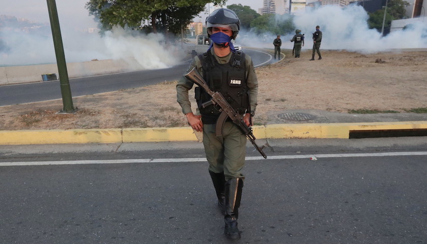 周二早上,瓜伊多发布了一段三分钟的视频,视频是在加拉加斯一个空军基地附近拍摄的,他的身边有几十名国家卫队军人和一些装甲车。他呼吁平民和武装部队中的其他军人加入推翻马杜罗的最后战斗。
