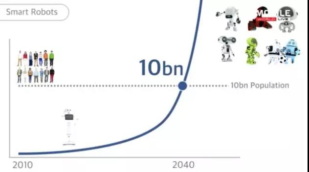 说到智能机器人,就得谈谈物联网了。如果单看物联网设备的数量,要超过人口总数根本不用等30年。我们刚刚收购了ARM,单单ARM一家公司,未来20年的物联网芯片发货量就超过1万亿,用不了30年。大家手里的智能手机,有99%的芯片来自ARM,今后将有80%的物联网芯片来自ARM。
