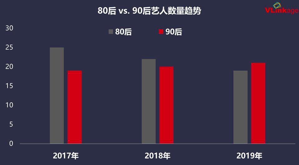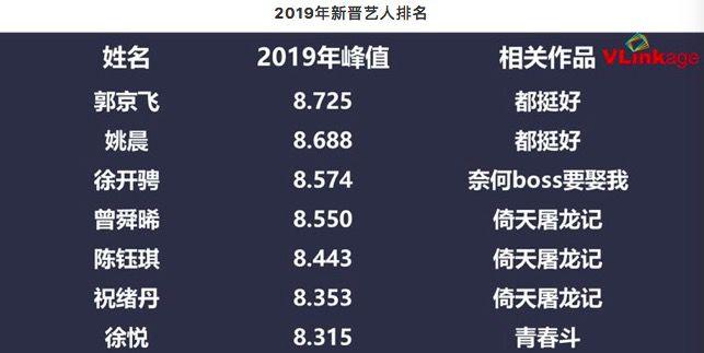 Vlinkage发布的2019年1-4月电视剧艺人报告显示,TOP50艺人中90后正在完成对80后的超越,成为头部艺人的主流群体,最显著的便是前段时间凭借着新版《倚天屠龙记》跻身此列的曾舜曦、陈钰琪和祝绪丹等人。另一方面,70后艺人的强势回流也备受关注,以《都挺好》备受关注的姚晨便是其中代表。