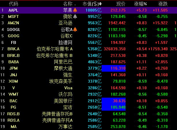 苹果涨幅扩大至5.7%,报212.16美元,创3个月单日最大涨幅,市值时隔6个月重回万亿美元,并反超微软成为全球市值最大的上市公司。