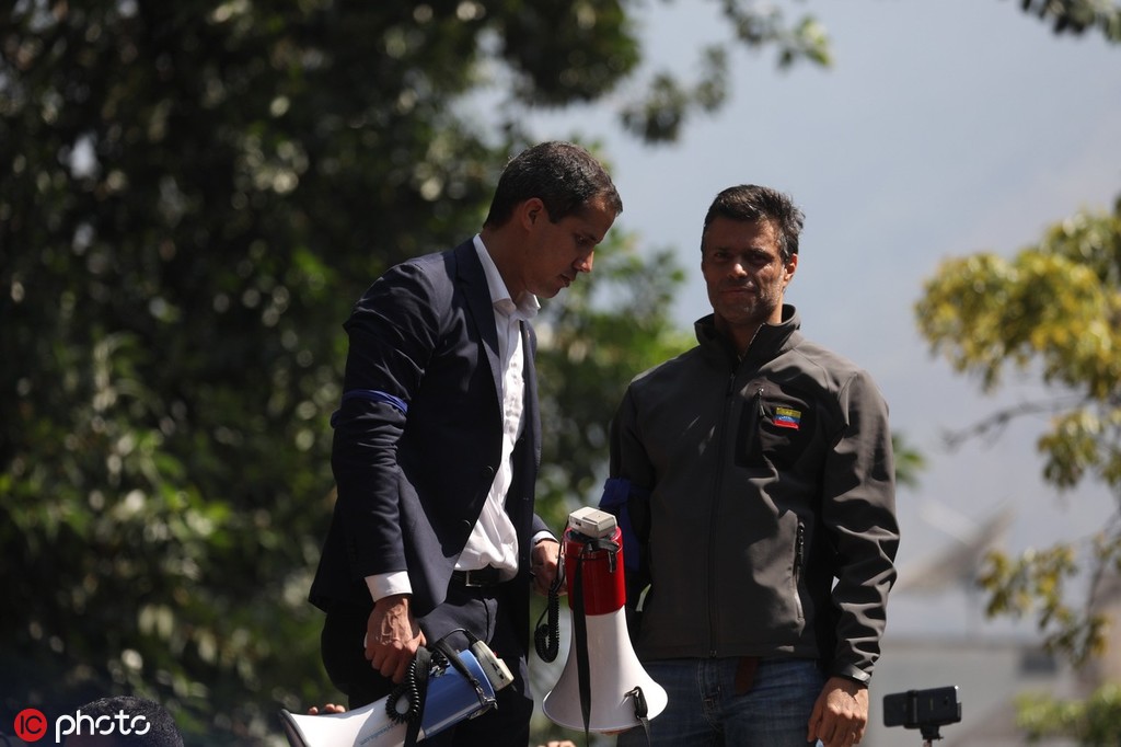 4月30日的委内瑞拉首都街头,反对派领导人瓜伊多再次企图发动政变。但这次,他的“风头”似乎不及他声旁的那名男子——莱奥波尔多·洛佩斯(Leopoldo Lopez)。