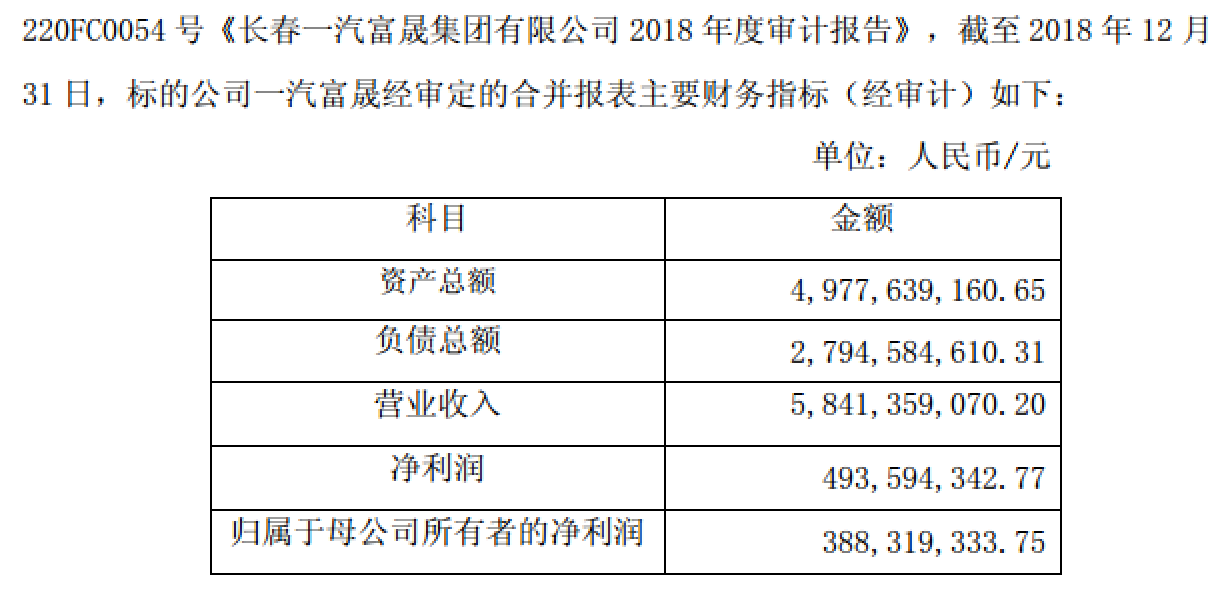 数据显示,一汽富晟截至2018年年底资产总额49.78亿元,负债总额27.95亿元,营业收入58.41亿元,归母净利润3.88亿元。罗小春还慎重承诺2019年至2021年一汽富晟每一年度的净利润(指经审计的归属于母公司股东的净利润)均不低于3.8亿元,如果任何一个年度的净利润低于盈利预测最低金额,应以现金形式进行补偿。发生上述情况时,应支付的补偿金额=(3.8亿元-一汽富晟在该未达标年度的净利润数)×10%。
