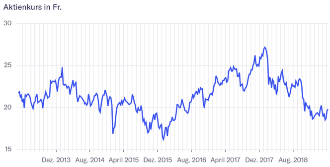孱弱的盈利能力拖累了ABB的股价。六年以来,ABB的股价始终徘徊在20瑞士法郎/股的箱型区间内。去年四季度,因欧元区经济增速放缓导致营收下滑, ABB的股价更是击穿20瑞士法郎的重要支撑线。