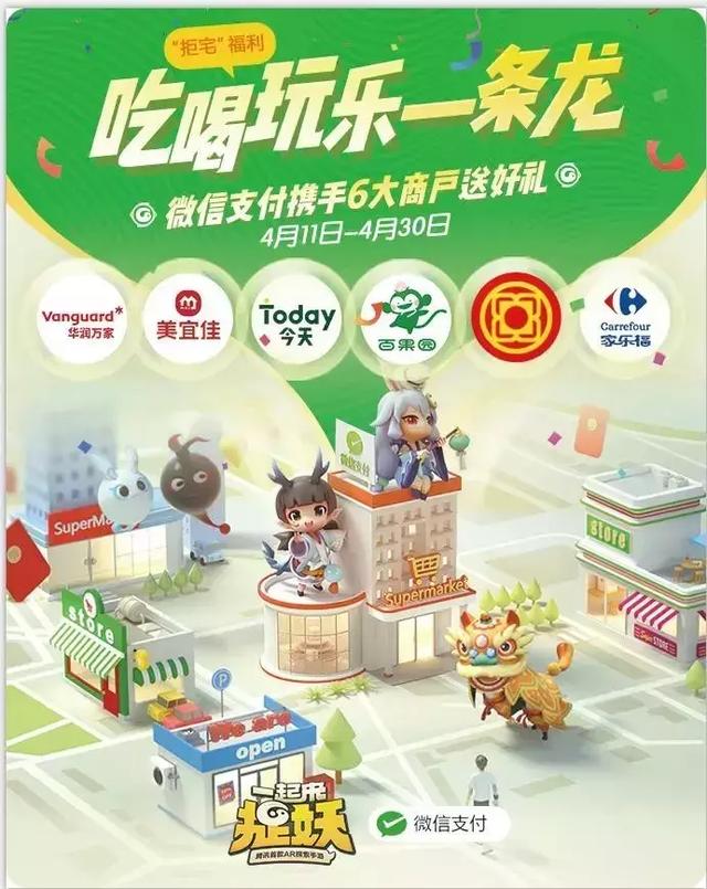比如由微信支付提供的优惠券活动——通过游戏提醒玩家附近门店藏有优惠券,玩家到达相关商家线下实体店一定范围内,就可以在虚拟地图上找到广告牌,点击特殊的“商家鼓”就能取得该商家的优惠券,并存入绑定的微信卡包中。据官方介绍,此次活动向玩法发放的福利额度超过千万,可领取福利的门店逾2万家,百果园、华润万家、家乐福等零售品牌为首批入驻商家,未来将开放更多商户入驻。