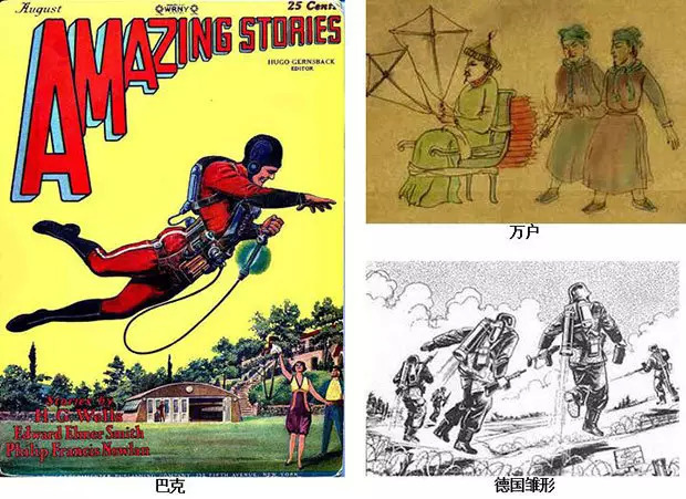 火箭喷气背包,也叫跳带、飞带、火箭带,历史悠久。谣传我们明朝的万户,曾经手抓风筝,自缚于椅,用四十七枚大火箭发射,直接冲进了天堂。