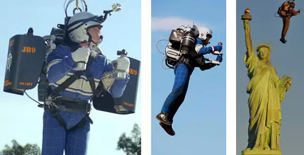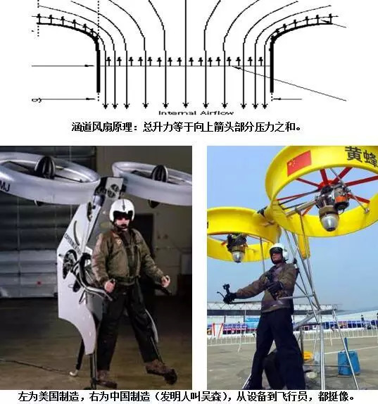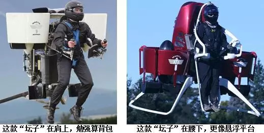 最令人信服的,还是美国人穿喷气背包飞越自由女神像报道的那款:手柄操纵,从容起落,升降,转向,平移,可上几千米高,百公里时速,续航10分钟,综合表现极佳。