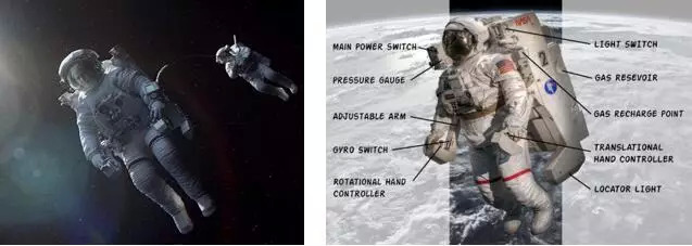 记得《地心引力》里,克鲁尼那个没座的扶手椅一样的设备?他背着它,喷着小气儿,牵着布洛克,遨游太空。