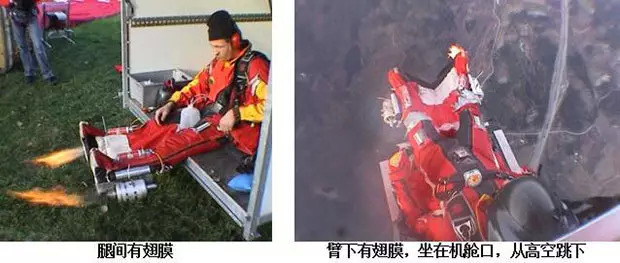 还有把涡轮引擎装在腿上的,挺像阿童木,但同样,他们要靠热气球或滑翔伞起飞,靠飞鼠装滑翔,靠降落伞着陆。