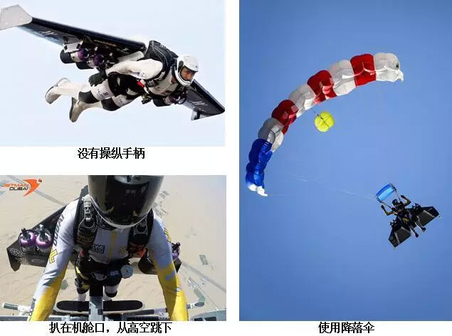 然而,你注意了吗?他的背包连操纵手柄都没有!既不能起飞——得坐飞机,也不能着陆——得拉降落伞,甚至不能小幅转向,只善于大跨度高速度地平移!平移!当他自夸自由飞翔时,你有没有一丝受骗的感觉呢?