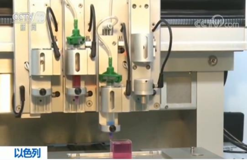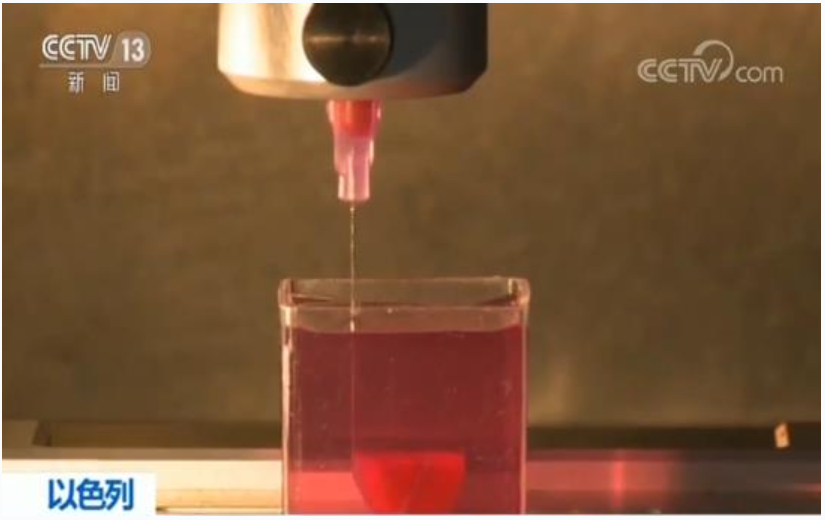 记者:“一个完整的人类心脏模型的3D打印过程是:生物墨水正在通过两根管子,两个针头喷射到这个小盒子里面的凝胶中,而一个小的心脏正在我们面前逐渐的成形。科学家们告诉我们,现在打印一个这样的小心脏只需要3个半小时,不过他们则是花了3年多4年的时间才摸索出来一个这样的打印方法。”