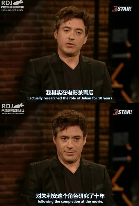 而后,开始慢慢走出角色,走出托尼·史塔克的光环,重新展示作为小罗伯特·唐尼的一面。