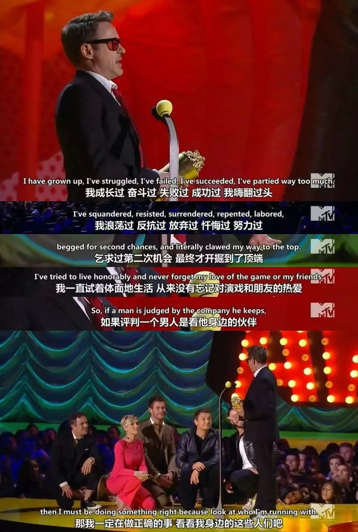 2015年,MTV授予小罗伯特·唐尼世代大奖,初代复联到场为他颁奖。