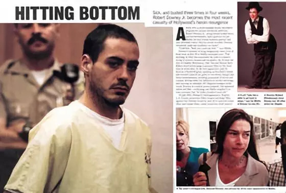 1996年,唐尼第一次因为毒品被拘禁,报纸头条上关于他的大大标题是,Hitting Bottom(触底)。