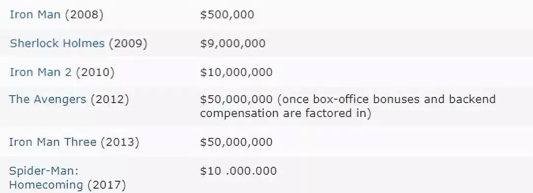 唐尼塑造的钢铁侠对漫威有多重要,看看他这些年的片酬就能知道。